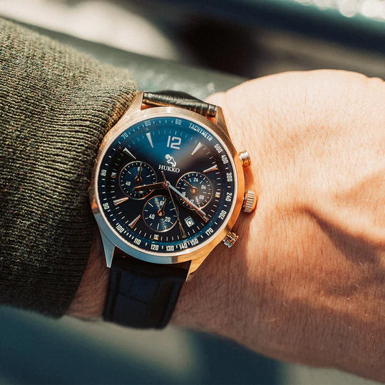 I hjertet af enhver stilbevidst person ligger ønsket om et ur, der perfekt kombinerer elegance og funktionalitet. Med en urkasse på 41 mm, fremstillet af 316L kirurgisk stål, tilbyder Hukko Copenhagen's Chrono-serie både skønhed og holdbarhed i én raffineret pakke.